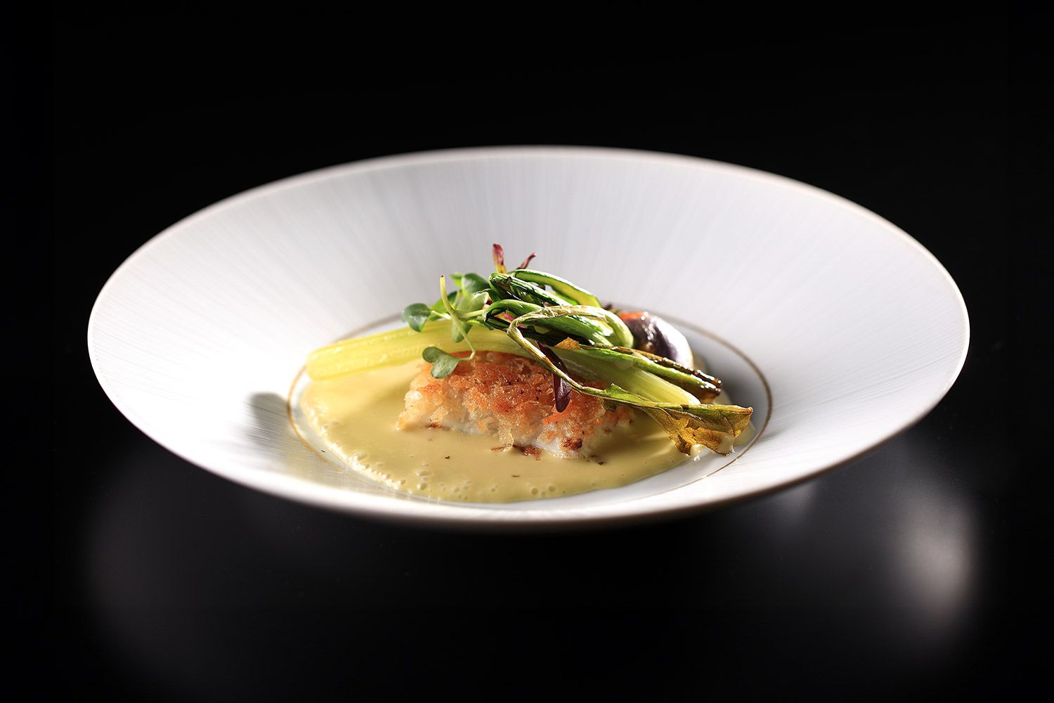 フランス料理の技法をベースにして、江戸東京を意識した和のテイストを融合させた料理で皆様をおもてなし。首都東京に集まる様々な食材や調味料などを取り入れ、近未来的なデザインのタワーにふさわしい最新の調理技術と日本の伝統を意識した古典的な調理技術の融合を一皿に表現しています。確かな仕事を仕上げる江戸職人の心意気と、エレガンスでありながら華のあるフランス料理の表現方法。伝統的でありながら現代的なエッセンスを加えた、懐かしくもどこか新鮮な味わいを、こだわりとぬくもりのある日本の器で四季を豊かに彩ります。