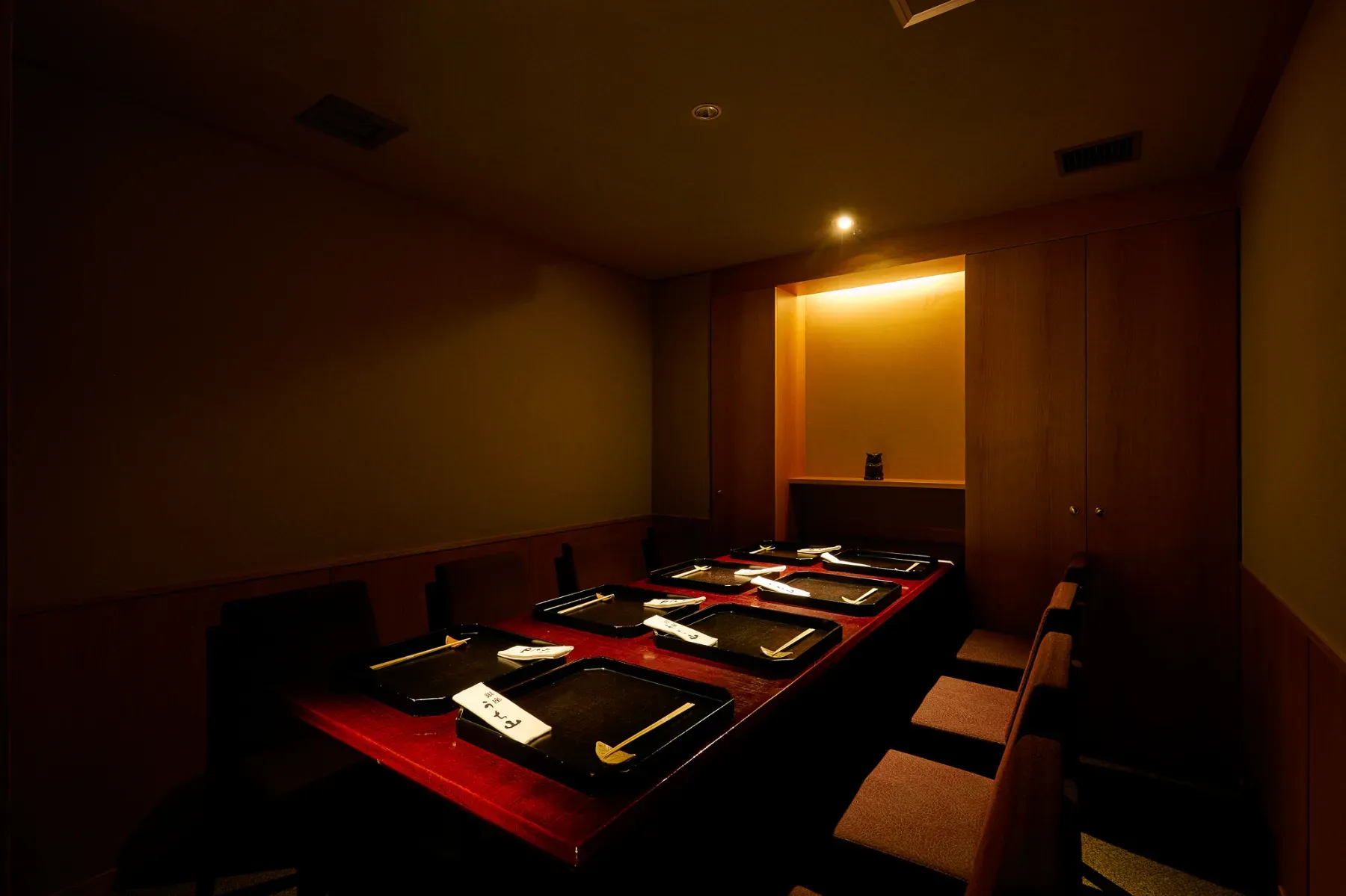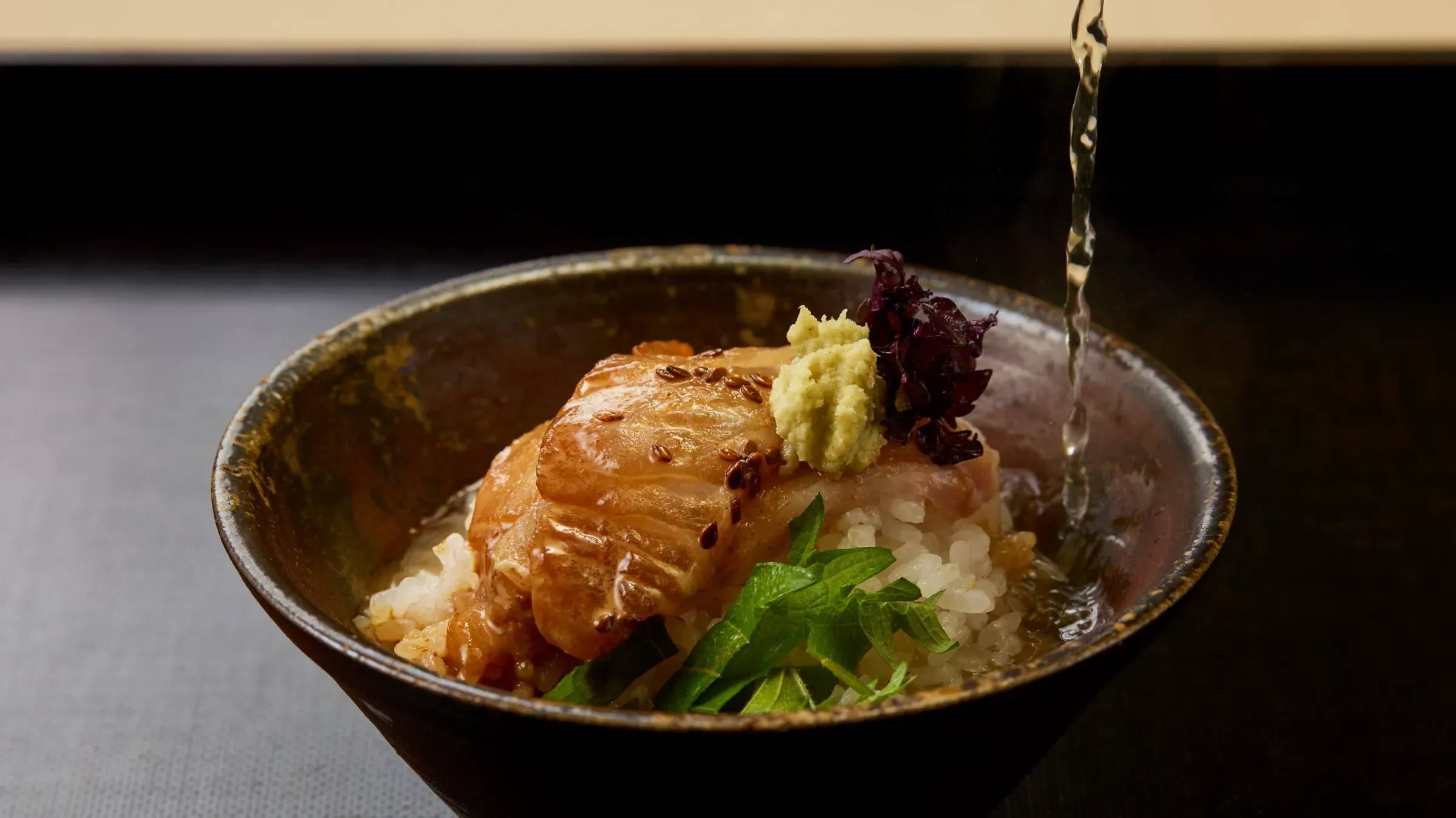 The store boasts a peaceful, Japanese atmosphere. The dishes are based on cha kaiseki (meal served at tea ceremony) with specialties like the sea bream chazuke (rice in tea or soup and topped with sea bream) and the karasumi iimushi (steamed sticky rice topped with bottarga). Enjoy the seasonal fare prepared to bring out their inherent flavors. Lunchtime menus are also available.
