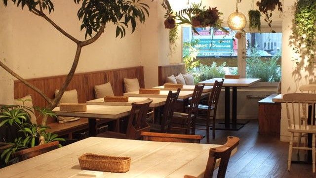 With natural light shining through our greenery-filled windows, we offer you a wide space where you can feel the warmth of trees. Be awed by our antique furniture and tableware directly imported from Morocco in our white, wood-based interior. We harness aromatic spices and herbs for our salads. Our vegan pancakes are sweetened with plant-based syrup and beet sugar and satisfy your cravings well.