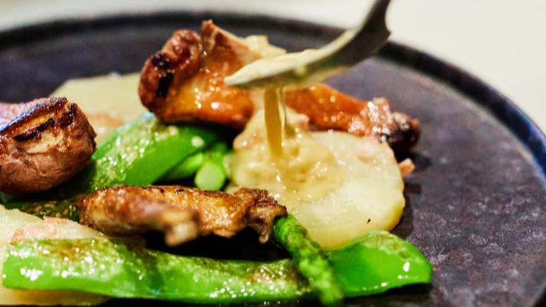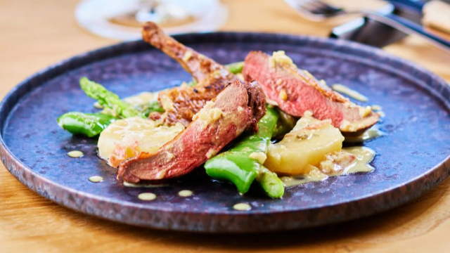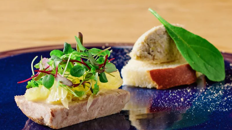 You can choose one of several main dishes. Some dishes may require an additional charge. Menu example Amuse Appetizer 1 Appetizer 2 Main Coffee Natural yeast bread