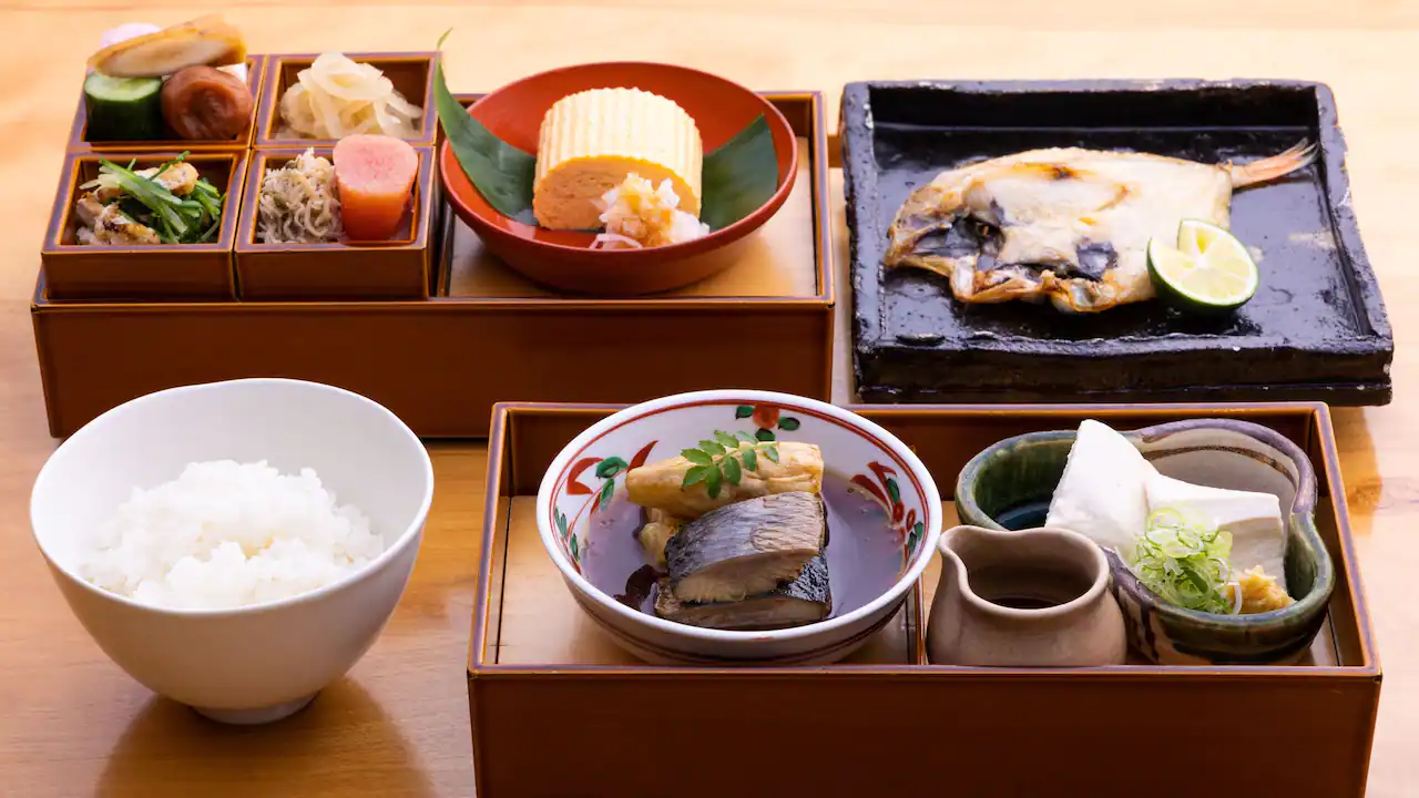 ■Noodles * Please choose hot or chilled Cha Soba ( Green tea buckwheat noodles ) or Udon Tempura(2 prawns and 3 kinds of vegetables ) Sushi Chef’s selection 3 kinds