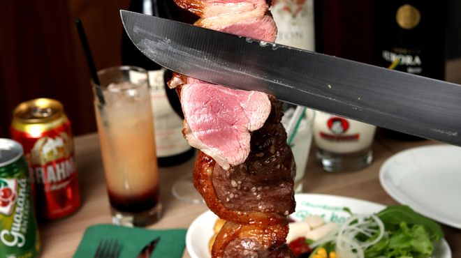 新虎通りにあるシュラスコ・ブラジル料理店で、ブラジル式BBQを味わう