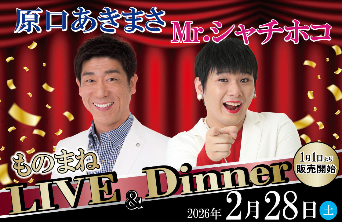 ▶「原口あきまさ・Mr.シャチホコ ものまねLIVE&Dinner」をお申込みの方は、