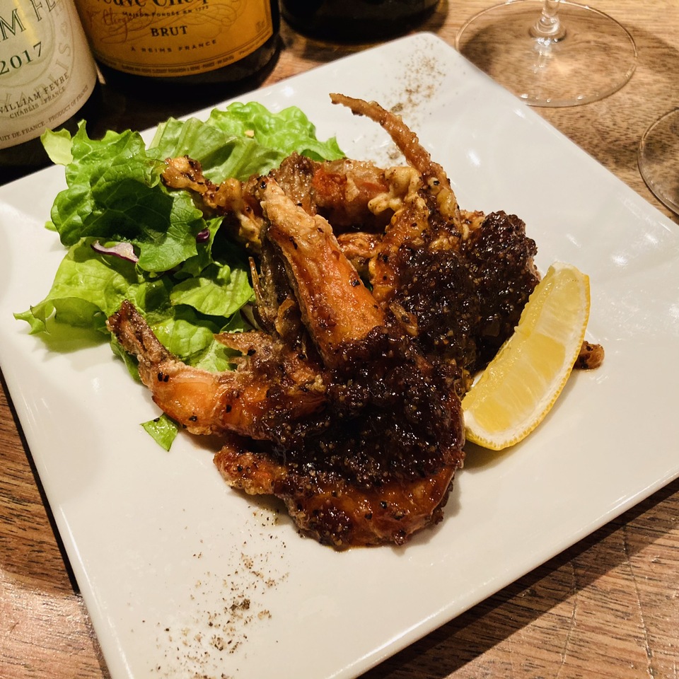 ガーリックシュリンプ・カニのスパイシーフリット・ポップコーンシュリンプの3種が入ったおつまみにぴったりの盛り合わせ。