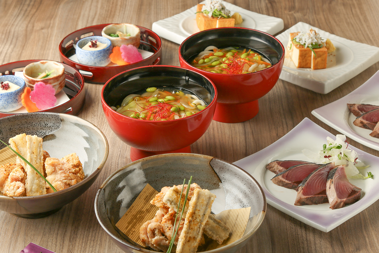 豪華宴席プラン【季節素材の崩し割烹×しおり名物関西出汁うどん×日本酒】