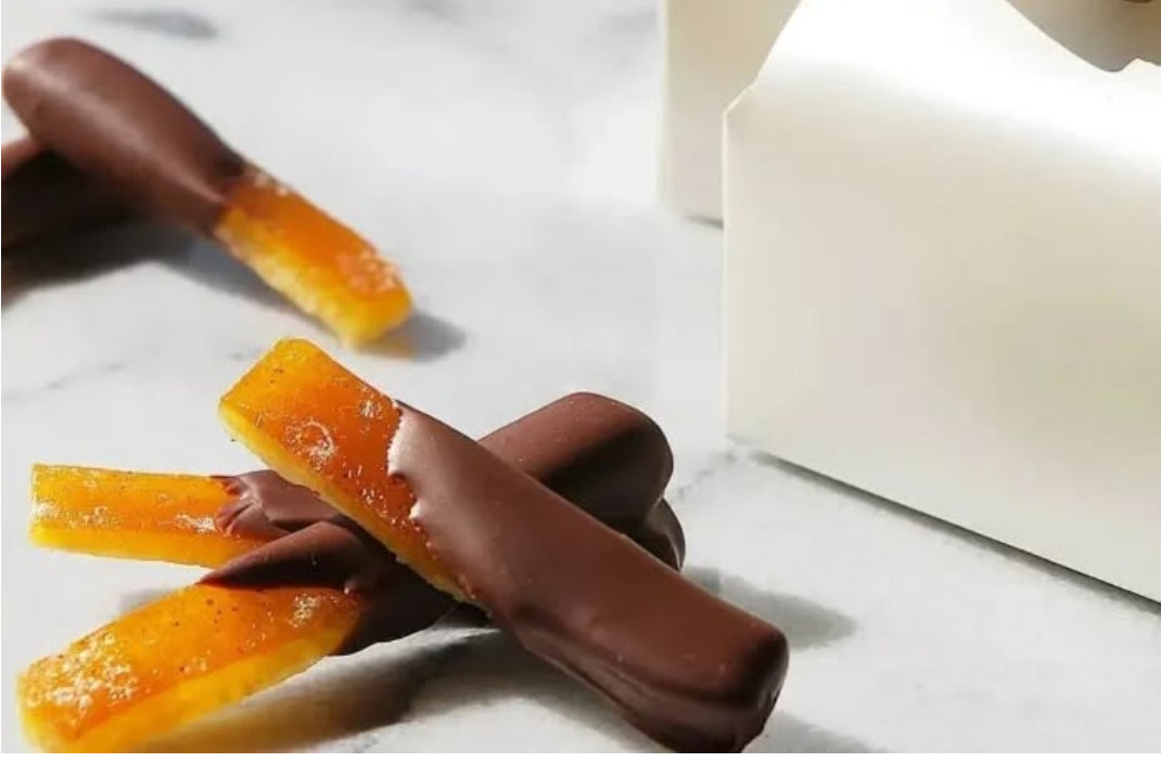 和歌山 藏光農園さんの甘夏の皮を数日間かけてコンフィにし、セミドライに仕立て、CACSAO HUNTERさんのトゥマコ70%チョコレートをかけました。