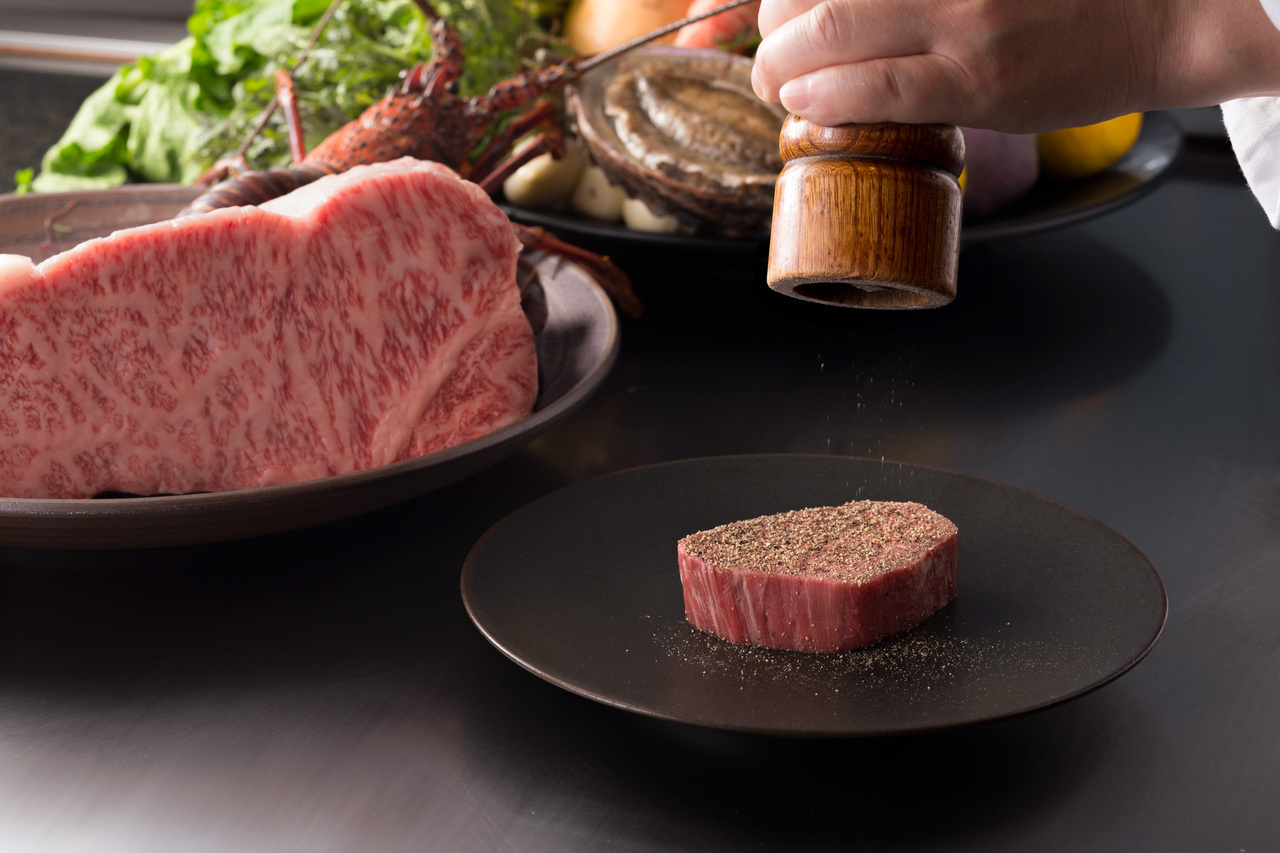 This is a course where you can enjoy grilled shabu-shabu using Kobe beef, live Japanese spiny lobster cooked on an iron plate, and carefully selected Kobe beef sirloin with a vivid and beautiful marbling.