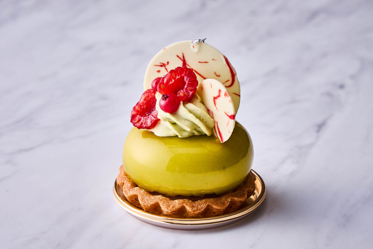 パッション風味のチョコムースの中に、ライム風味のココナッツムースとマンゴーブリュレを入れ、夏のさわやかなテイストに仕上げました。