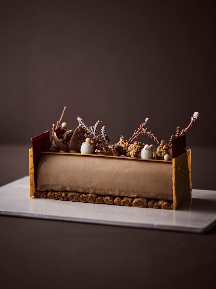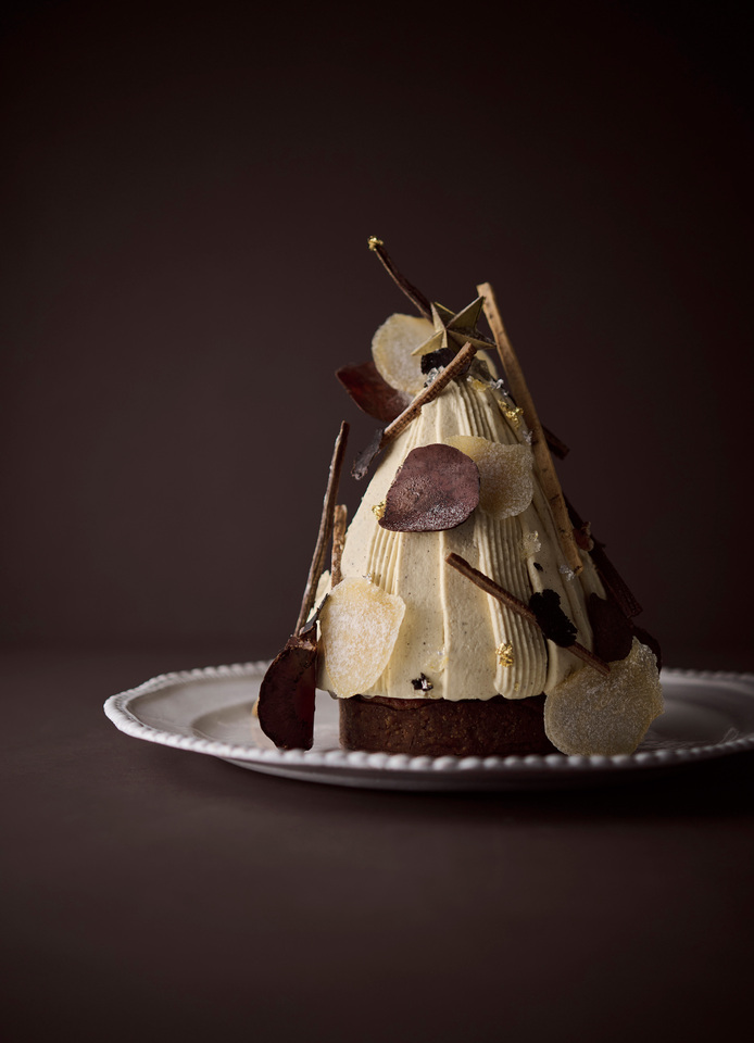 聖夜に降り積もった真っ白な雪面に、真っ赤な苺の光が降り注ぎます。溢れんばかりのフレッシュの苺と苺のコンポートをサンドしました。しっとりとしたジェノワーズとマダガスカル産バニラシャンティとの相性は王道の味わいです。