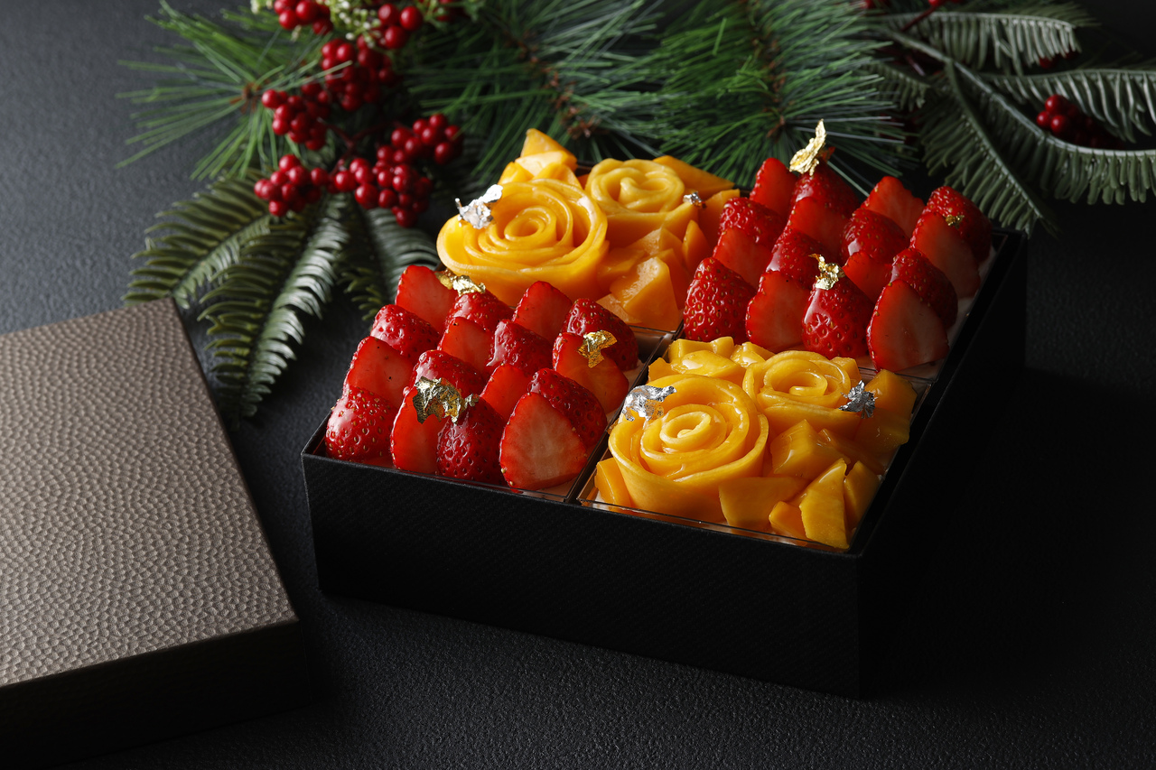 新年の門出を華やかに演出する限定スイーツは、赤はいちご、黄色はマンゴーの2種のケーキが市松模様のように並び、宝石のように輝く美しいビジュアルとフレッシュなフルーツの味わいを楽しめる、目にも舌にもうれしい特別なケーキをご用意しました。
