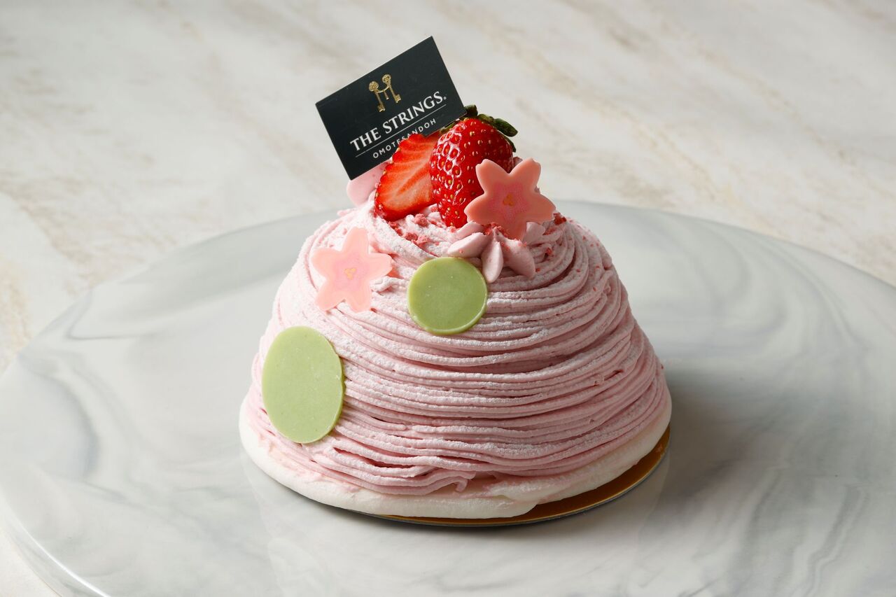 ピンク色が可愛らしい桜モンブランクリームをしぼった