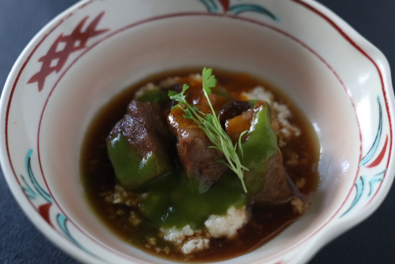 The main dish of all course meals is Japanese black beef steak.