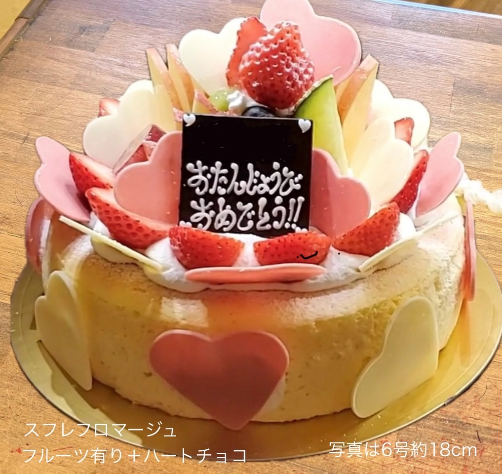 أسئلة لـ Souffle Fromage [with fruits🍎🍈🍊 + Heart Chocolate🩷] (Size 6, diameter approx. 18cm) For 6-8 people [5,147 yen excluding tax]