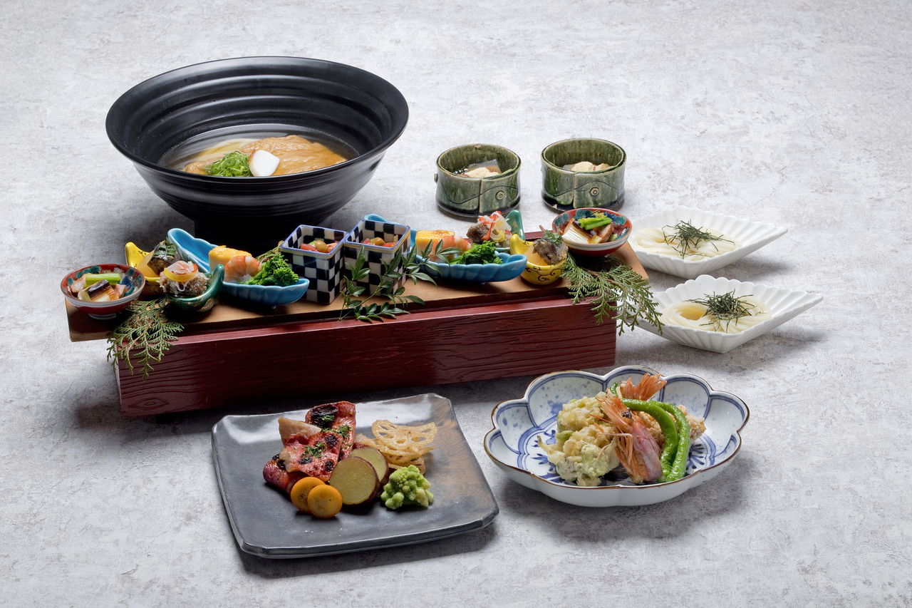 [お品書き] 細うどん・前菜5種・季節の焼き物・季節の揚げ物・お好きなおうどん・デザート