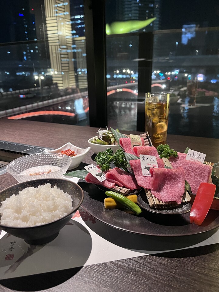 وجبة بالطبع تستخدم فقط لحوم البقر اليابانية السوداء المختارة بعناية من رتبة A5 مع BMS من 10 أو أعلى. يعتمد المطبخ على موضوع "ياباني" و "أومامي" ، وقد تم إنشاؤه بحيث يمكنك الاستمتاع بمزيج من أومامي ورائحة المكونات المختلفة. يرجى الاستمتاع بالأطباق باستخدام أجود أنواع اللحوم اليابانية.