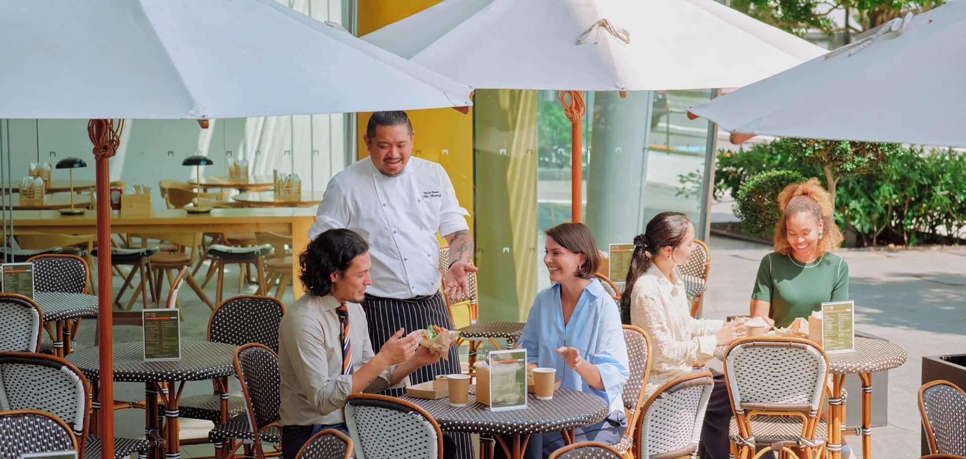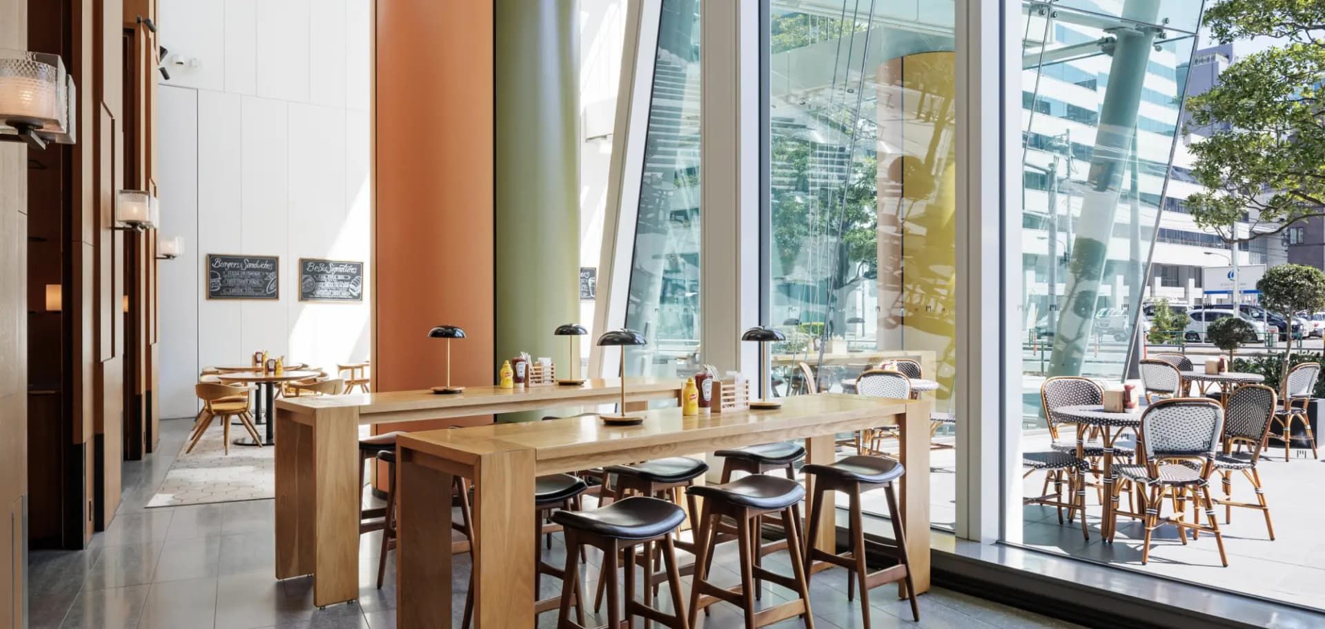 BeBu is an American comfort food restaurant located on the first floor, home to Andaz Tokyo. Our diverse menu features authentic flavors—from signature Cajun chicken and original burgers to desserts—crafted by chefs with extensive experience in the U.S. Whether you're dining casually, offers a variety of dishes you can enjoy in any setting. Pets are welcome at our terrace seating area only.