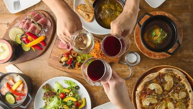 【ディナー】《2時間飲み放題付!》お料理5品+デザート☆乾杯スパークリングもできます◎癒しのお洒落カフェ空間で、ジューシーハーブチキン、デザートなど全6皿☆