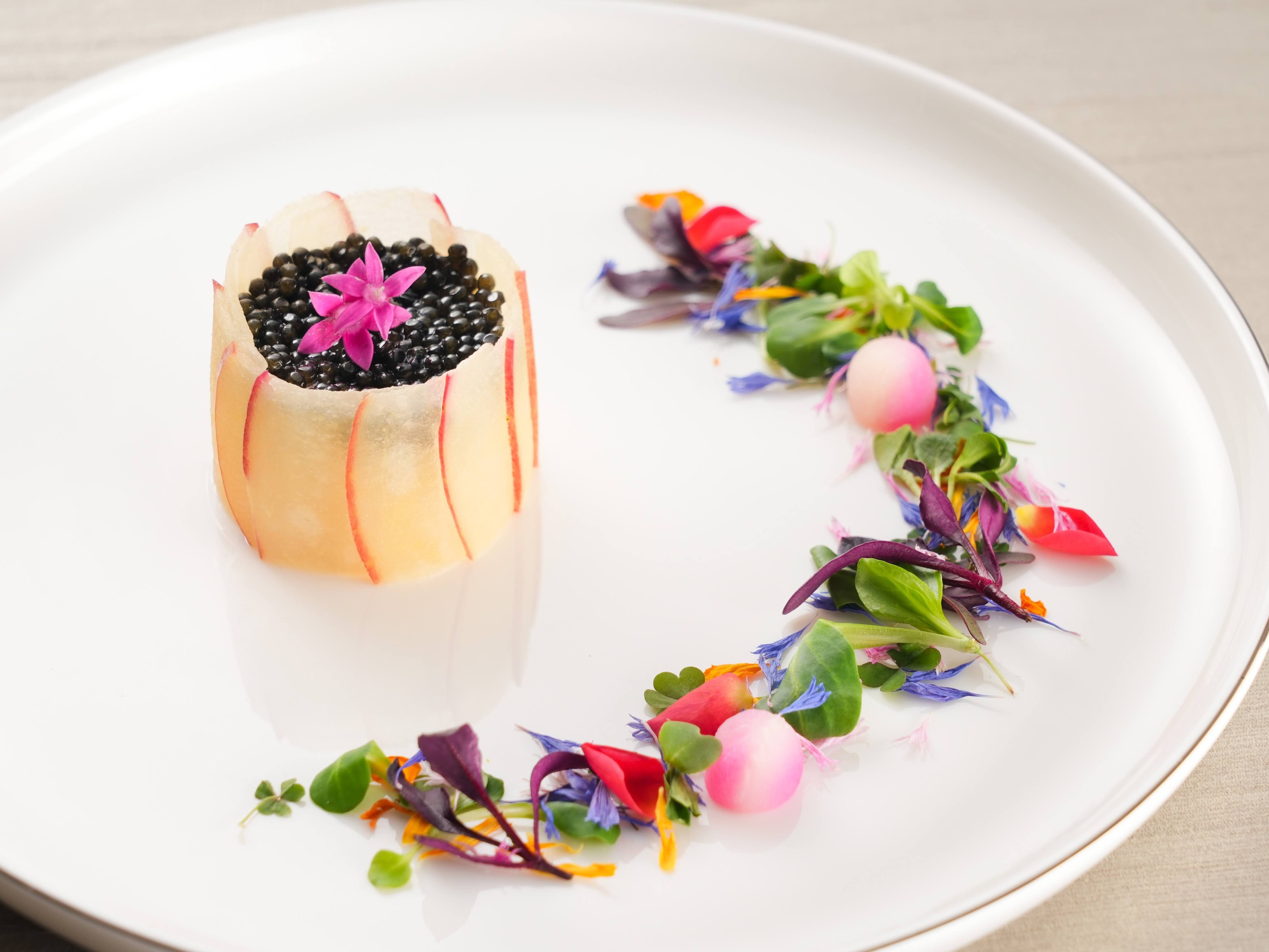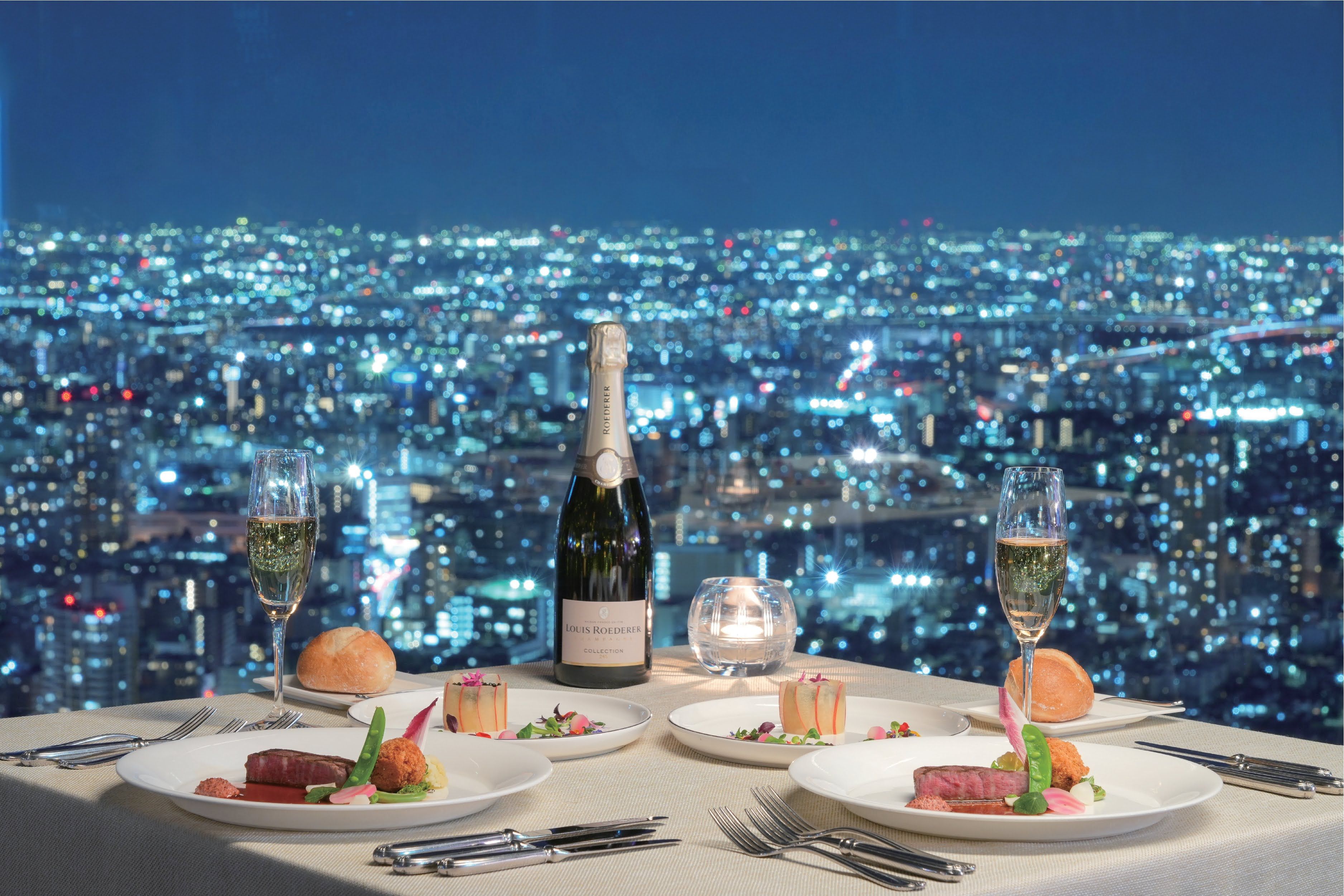 『伝統と革新』美食のモダンフレンチと絶景空間のレストラン 料理のクオリティは完成した【その瞬間】に最高のパフォーマンスを生み出す。 五感を刺激するテーブルパフォーマンスで仕上げるモダンフレンチ、地上210mから望む 解放的な絶景と共に記念日やお祝いなどの特別な1日をご一緒にごゆっくりお楽しみください。