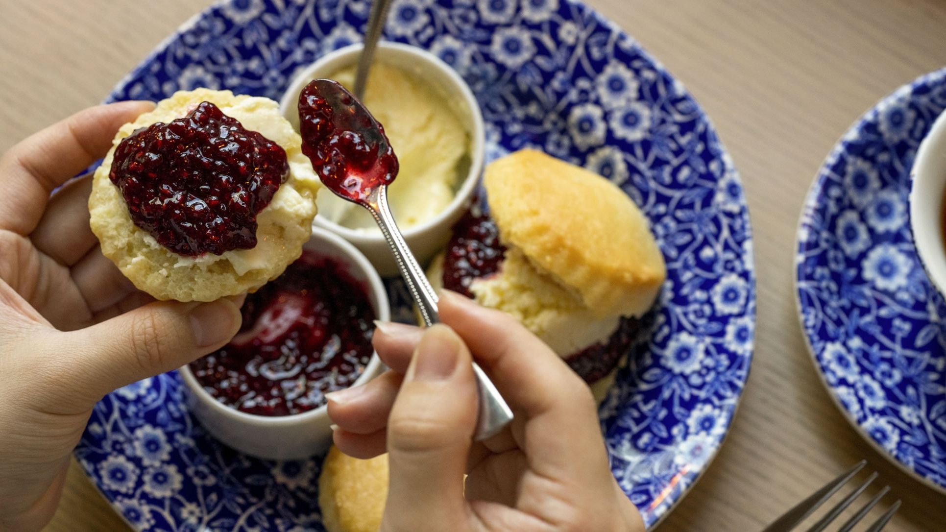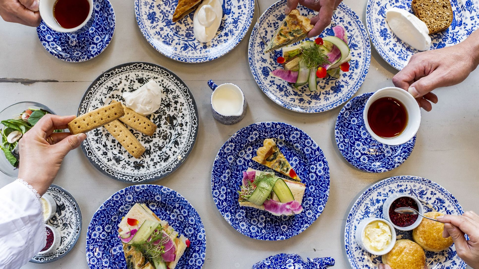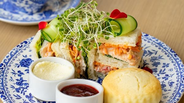 店内は開放感があり、ゆっくりお茶の時間を楽しめる空間です。英国スタイルのティールームで、おいしい紅茶とスイーツをご堪能ください。「アムシュティー」の紅茶と英国の老舗陶器ブランド「バーレイ」の食器を使用。紅茶と一緒にお楽しみいただくのは、自家製のスコーンやサンドウィッチ、ショートブレッド、アップルパイなどをご用意。スコーンには自家製クロテッドクリームとジャムをつけてお召し上がりください。