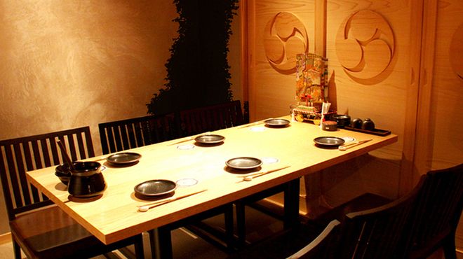 店内へ足を踏み入れると、そこは和モダンな落ち着いた空間で、個室やカウンター席、掘りごたつ席などを完備しています。看板メニューには、ごまポン酢で味わう博多名物の鉄板餃子、もつ鍋などをご用意。宮崎名物チキン南蛮、甘口の九州醤油と胡麻だれで味わう胡麻ブリなども、故郷の懐かしい味を楽しめると好評です。芋、黒糖焼酎など焼酎も豊富に取り揃えていますので、一緒にお楽しみください。