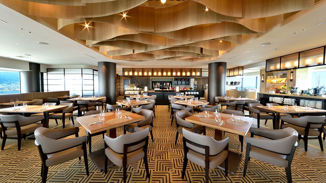 A buffet restaurant featuring a chef’s special menu and a fine view of Kobe City We use specialty products from Hyogo Prefecture and only the finest ingredients sourced locally and overseas. Our menu offers around 70 different items, including roast and grilled dishes carefully prepared using a special stone oven, as well as appetizers and desserts.