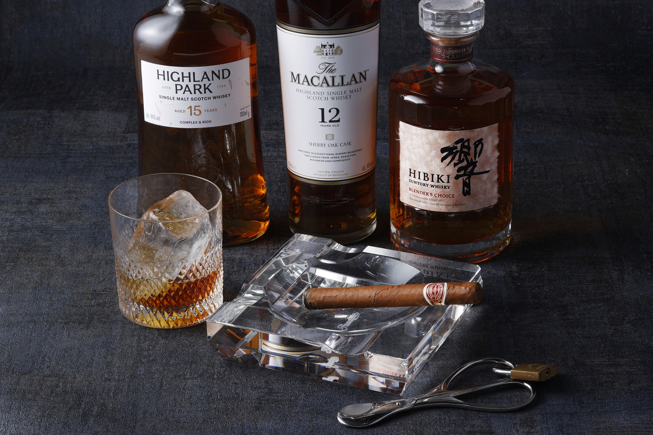 A trial set pairing one carefully selected whisky with a cigar, designed to be approachable even for first-time guests.