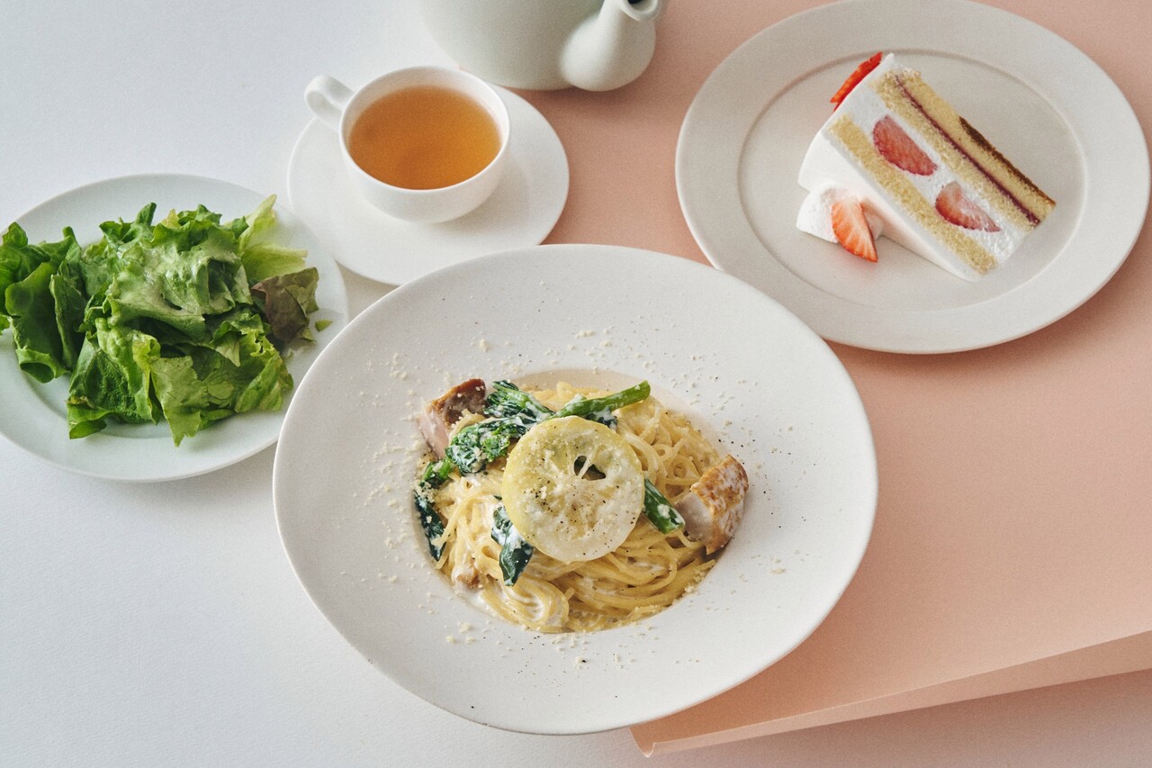 [Special brunch with dessert and drink] Homemade salted lemon cream pasta with young chicken and rape blossoms