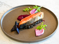 【魚料理】カンパチのヴァプールとズワイガニのフリット ソース・ヴァンブラン
