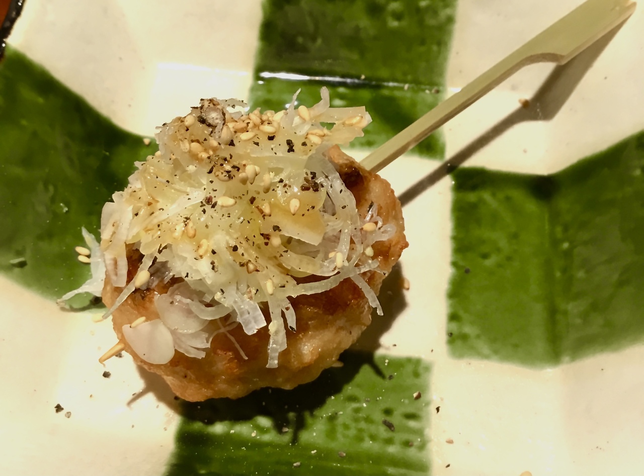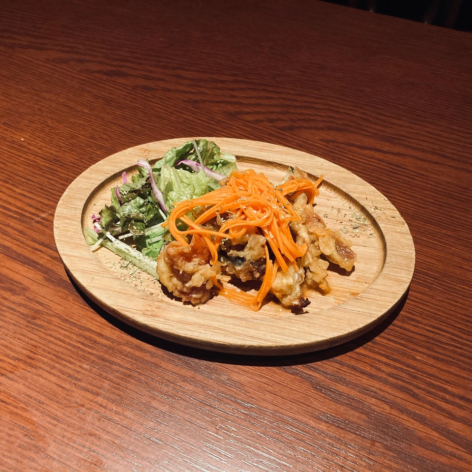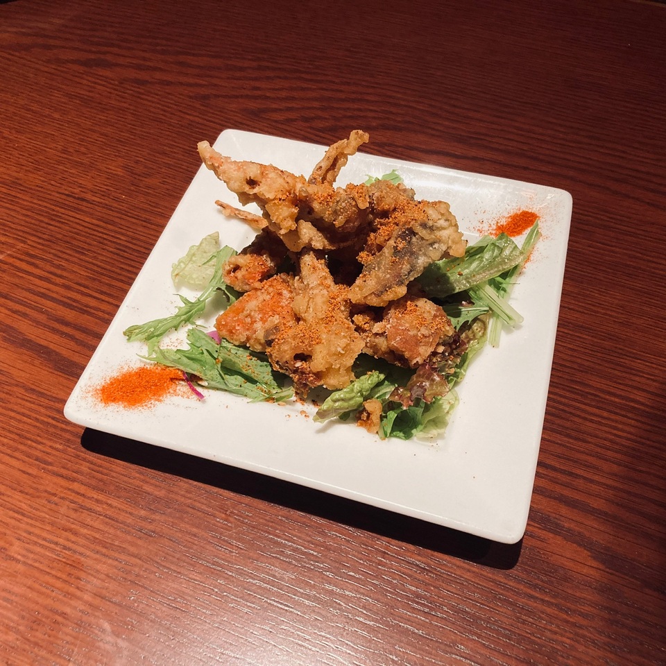 ガーリックシュリンプ・カニのスパイシーフリット・ポップコーンシュリンプの3種が入ったおつまみにぴったりの盛り合わせ。