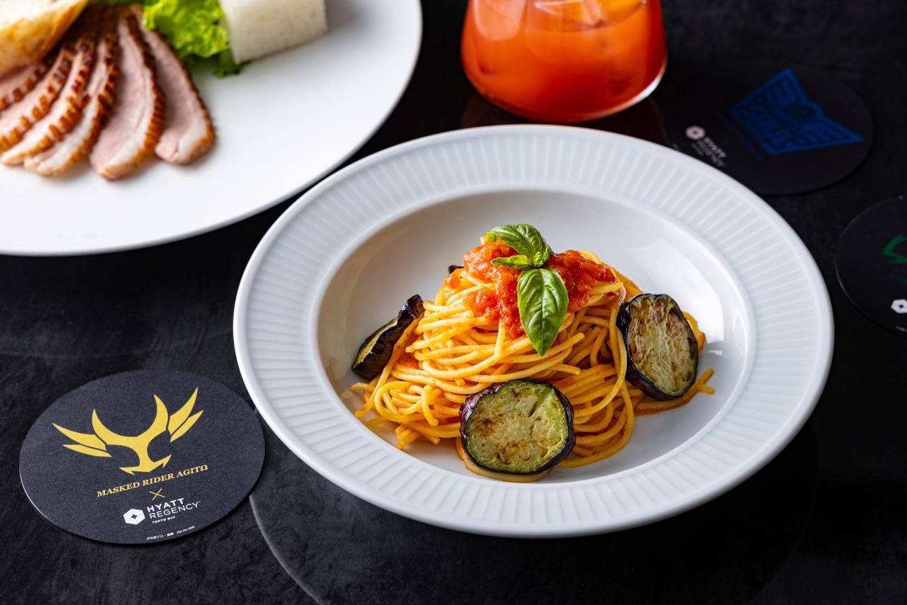 「レストランAGITΩ」の料理をイメージした、「ナスとトマトのパスタ翔一スペシャル」や仮面ライダーアギト バーニングフォームをイメージしたオリジナルカクテルをお楽しみください。