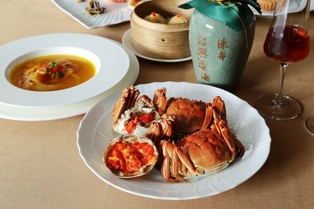 干し鮑と干しなまこのオイスターソース煮、上海蟹一隻、上海蟹の蟹肉入り小籠包等、干し貝柱入り大きなフカヒレの煮込みと贅を尽くした期間限定コースです。