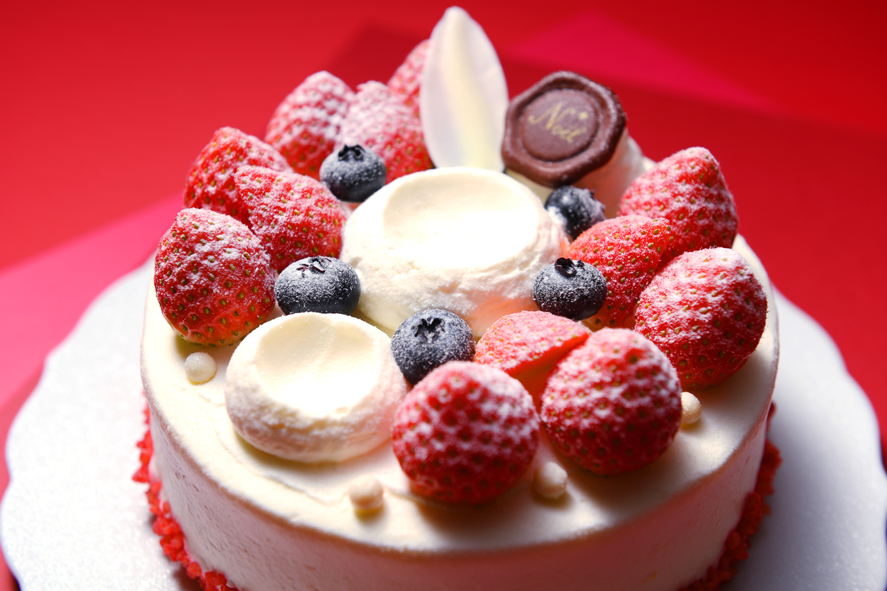 はちみつとやさしい甘みの素焚糖(すだきとう)で焼き上げたスポンジ、まろやかな北海道産生クリーム、いちごやブルーベリー、サクサク食感のアーモンドクラックランフランボワーズがアクセント。ふんわり軽やかな王道のショートケーキ!