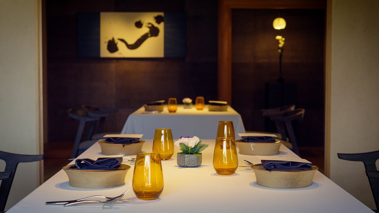 福岡時代より愛用していた有田焼、伊万里焼の器に、今回、新しく唐津焼も加わり、さらにこの土地だから味わえるお料理を、器、景色、雰囲気と共にお楽しみくださいませ。