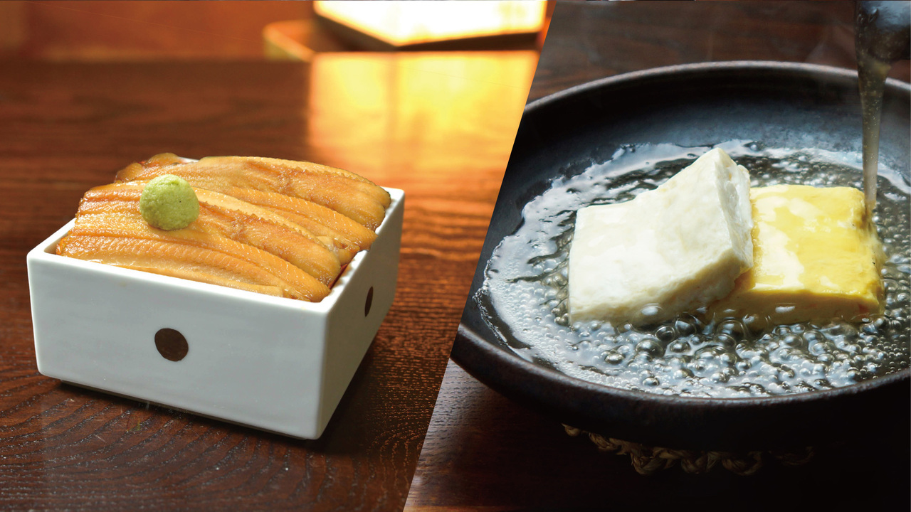 北海道の大地が育んだ、希少な卵「米艶」と「玉艶」。お米を食べて育った鶏から生まれる純白の玉子焼、濃厚なコクが際立つ黄金色の玉子焼きを、一皿で贅沢に並べました。 職人が一本ずつ丁寧に巻き上げた玉子に特製出汁の餡をたっぷりとかけて至福の御膳です。