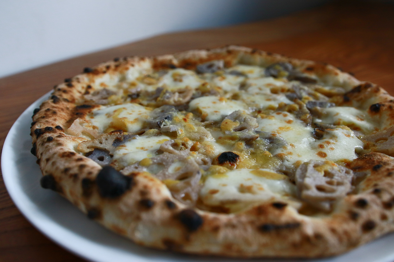 Anchovy sauce, Lotus Root, Mozzarella, Grana Padano, Japanese Mustard Sauce