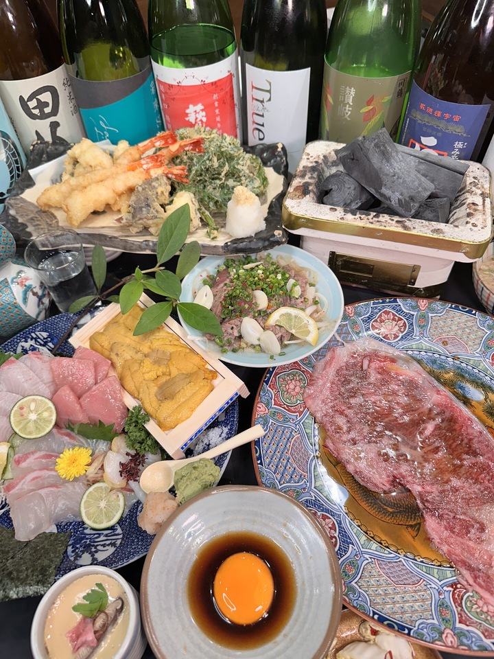 【贅沢サーロイン炭火焼きしゃぶ雲丹板1枚付き】2時間飲み放題付き全6品