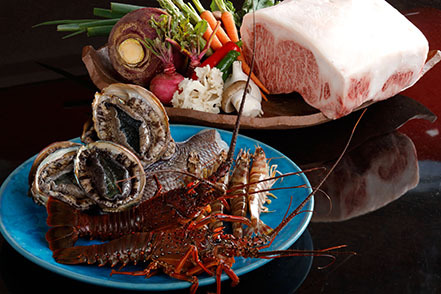 At Teppanyaki Yamabuki, you can enjoy a live cooking experience as we grill seasonal seafood and mountain delicacies right before you. We present the peak flavors of ingredients such as abalone, Ise lobster, and Matsusaka beef on the teppan. Please relax and savor a special moment in our classically styled dining room.