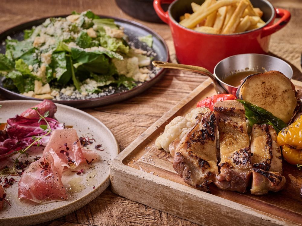 選べるメイン料理と、人気の牛スジカレーやサラダ、パン、ソフトドリンクをビュッフェスタイルでお楽しみいただけます。