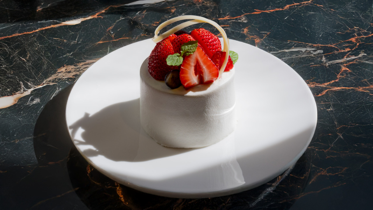 苺のスペシャルアフタヌーンティー あまおう・古都華・淡雪など、旬を迎えた苺を贅沢に使用。 苺のタルト、苺とピスタチオのムース、苺とホワイトチョコのマカロン、苺のスコーンを彩り豊かに揃えました。 さらに、お客様の目の前で温かい苺の蜂蜜ソースをかけて仕上げる〈苺と蜂蜜のパンペルデュ〉のライブドルチェ付き。 苺の香りと甘みを五感で楽しむ、特別な午後をお過ごしください。
