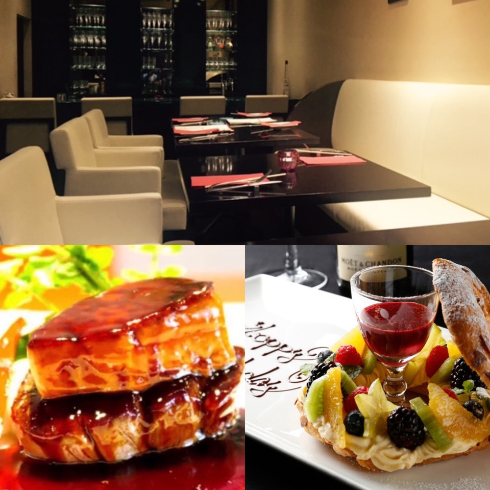 旬 コース + 記念日ケーキ パリブレストケーキにメッセージを添えて