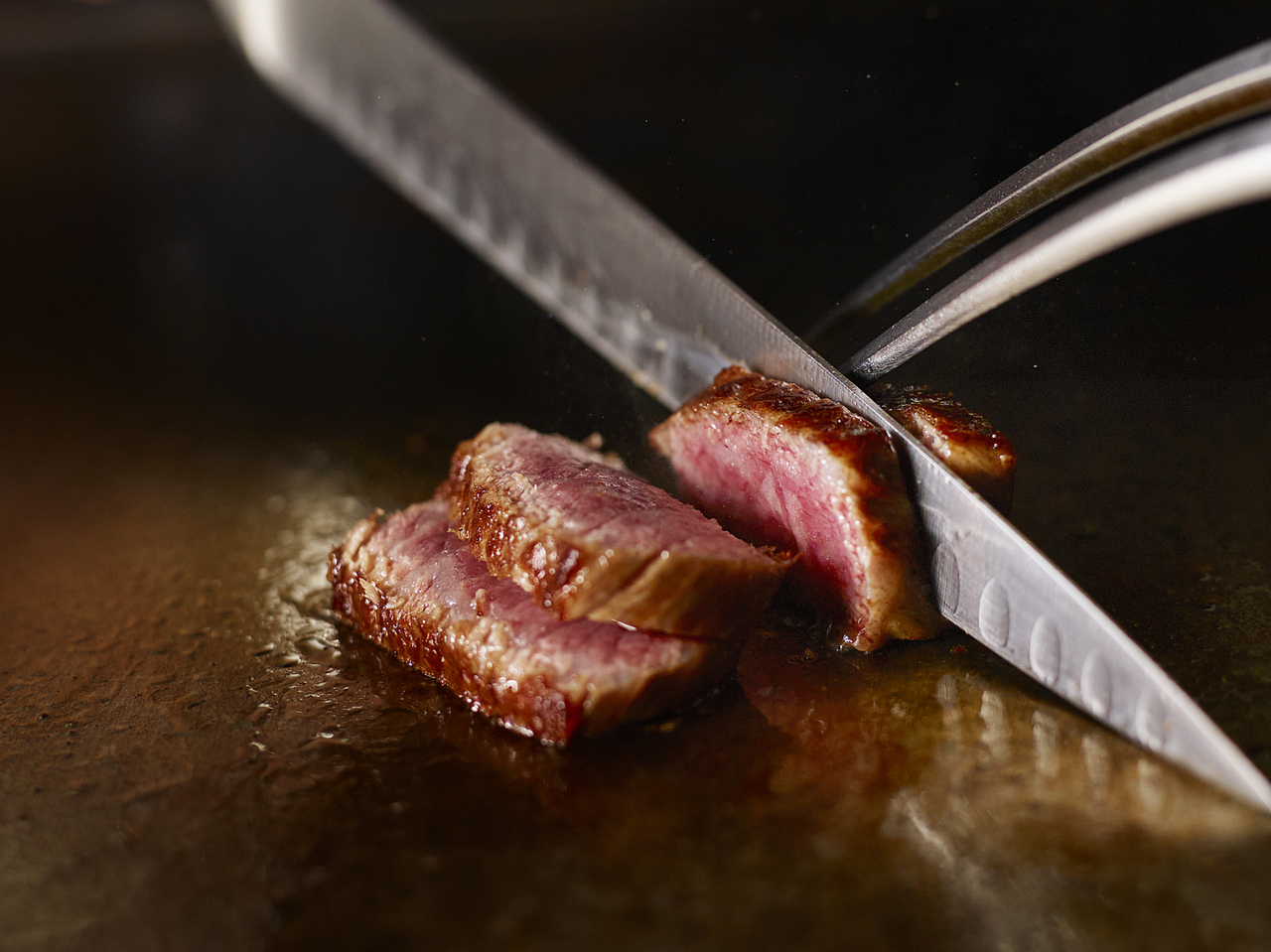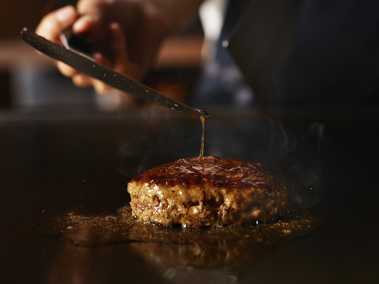 A hamburger steak lunch of juicy Wagyu beef and Agu pork prepared right before your eyes