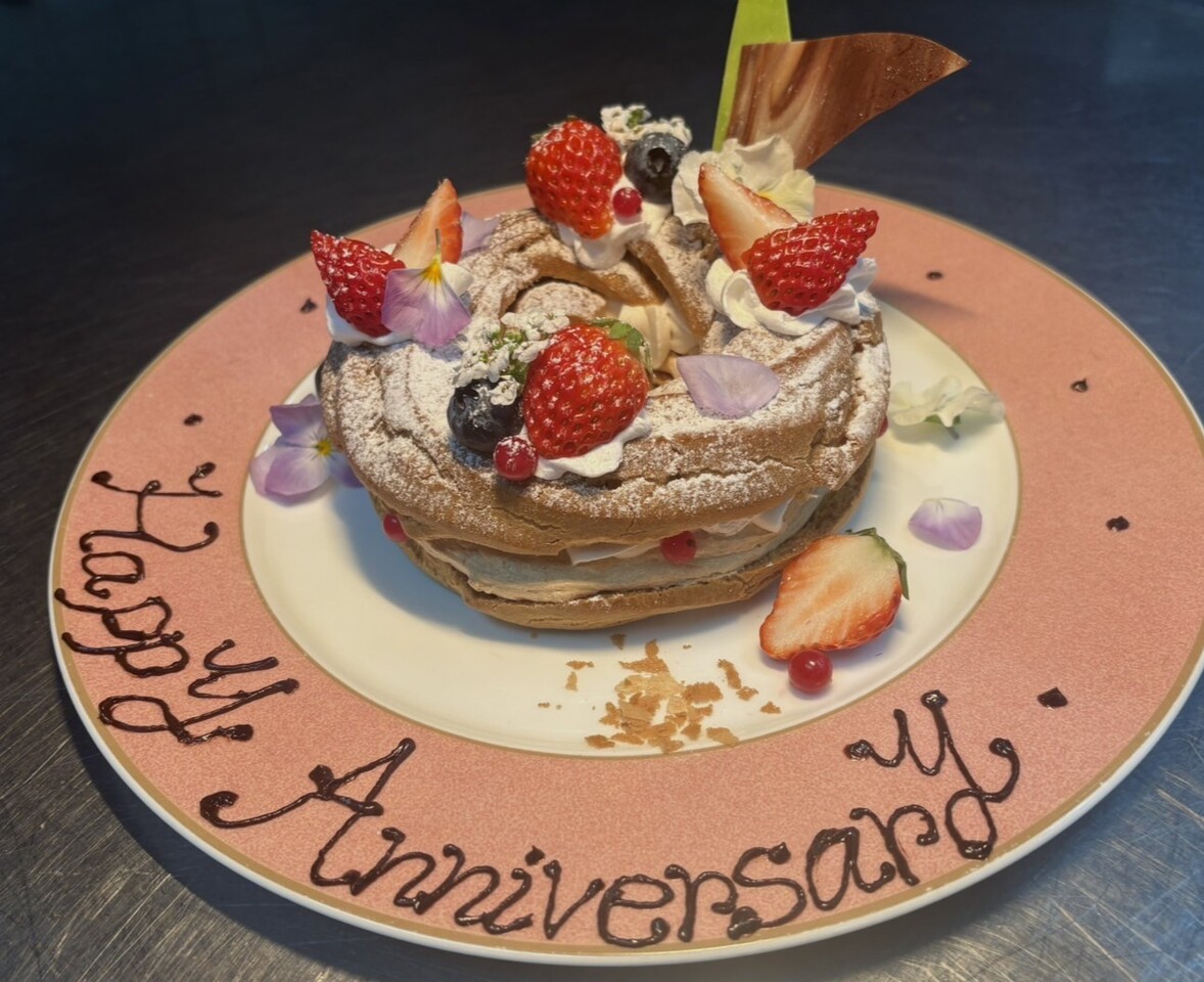 当店1番人気の月替わりフレンチコース プレジール に乾杯スパークリングとアニバーサリーパリブレストの付いたアニバーサリープラン!
