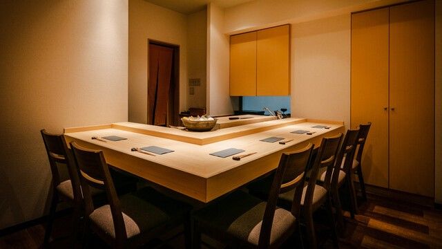 鮨天川は鮨屋でありながら、魚だけでなく旬の野菜を楽しんでいただけます。お店で出す野菜は、京野菜の中から、目利きの店主が厳選したものです。新鮮な魚と旬の野菜との調和をお楽しみください。よいのは味だけではありません。視覚的にも高い満足を得ていただけるよう、工夫を施しています。店内にはカウンターと個室の2つの席をご用意しております。お一人様でじっくり料理を味わうことも、お連れさまと心地よい時間を過ごしていただくことも可能です。