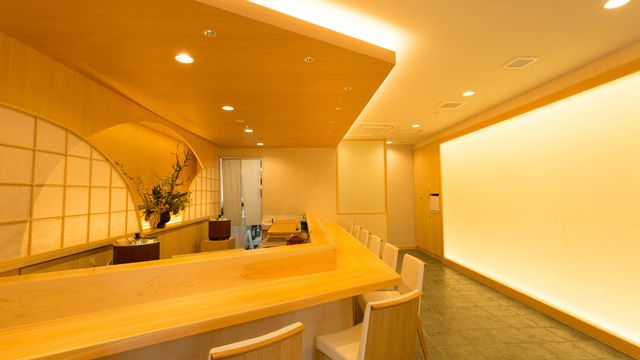カウンター席10席と8人掛けのテーブル席がございます。 お鮨はコース料理にて賜わっております。 御家族・デート・接待...様々なシーンにてご利用くださいませ。