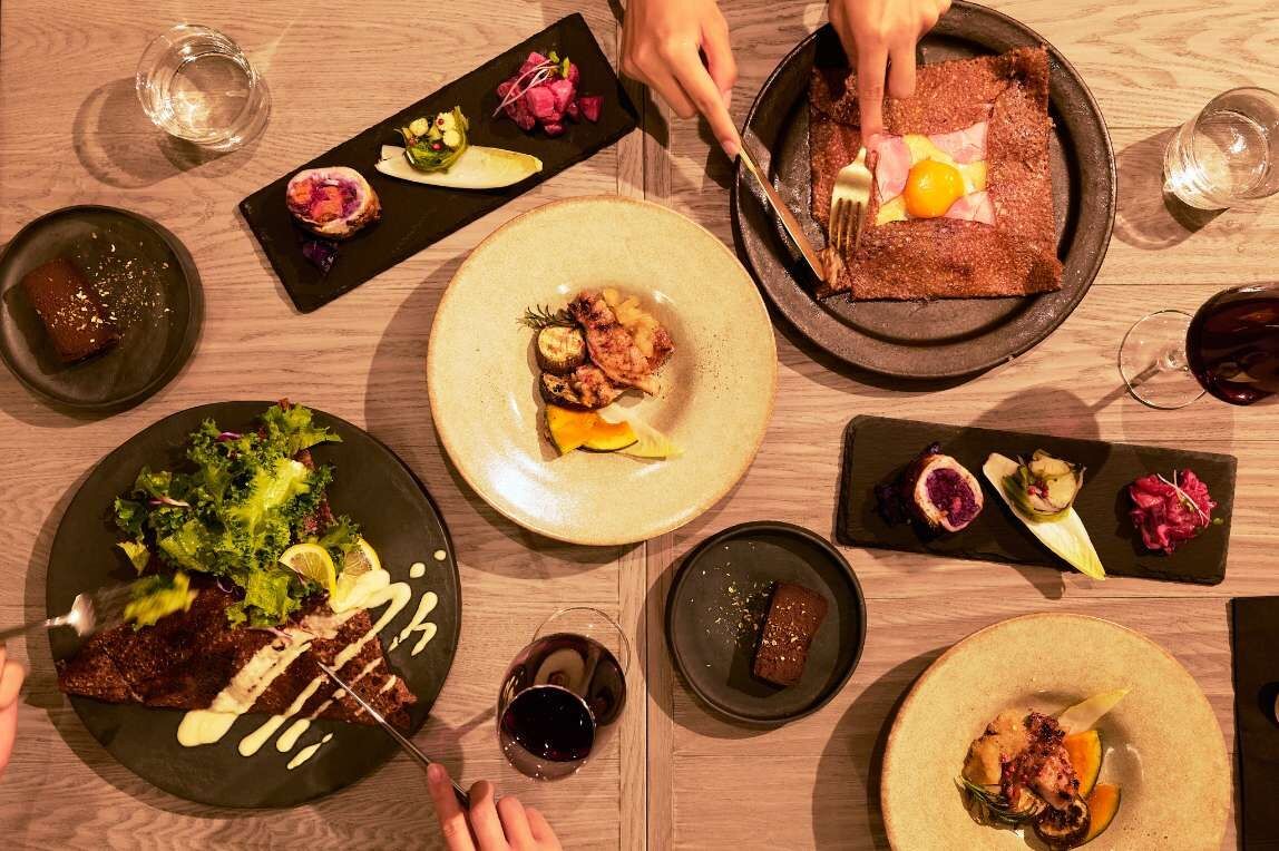 プリフィクスタイプのショートコースをご用意いたします。味わい豊かな前菜から、自慢のガレット、メインまで旬の食材をたっぷりと使った料理で、ゆっくりと夜のひとときをお過ごしください。 地元の新鮮な食材を使ったサラダやガレットをメインに、体に優しい料理をご提供いたします。さらに近隣の生産者が手がけるテーブルウェアや食品も多数取り揃えました。地元とのつながりを大切にする2343ならではの食体験をお楽しみいただ