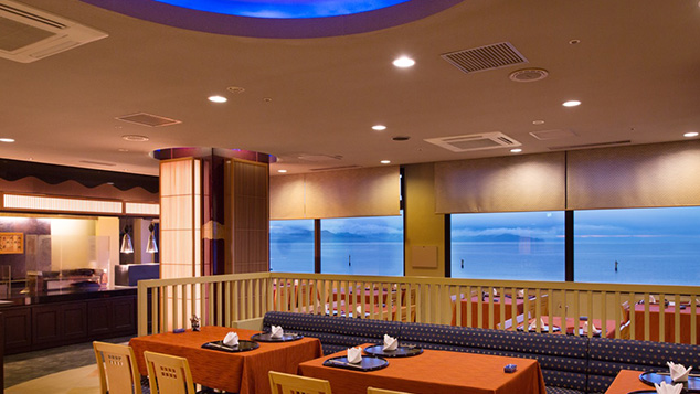 A restaurant by the sea with a view of the Naruto Strait. The fresh Naruto sea bream caught in the nearby sea can only be enjoyed here. Their sea bream rice is known for its firmness and moderate fat. Their Ise prawns from Tokushima prefecture have an excellent reputation for its sweetness and firmness. They also offer high-quality dishes such as Awaji beef and Awa beef.