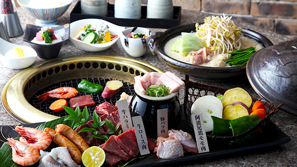 A restaurant in a resort hotel located on Oge Island, a scenic spot in Naruto City. You can see Kii Suido and Awaji Island from the window, and you can enjoy your meal while soaking up the refreshing mood. Ingredients are carefully selected seasonally. Bake your food on charcoal and enjoy the fresh food. Kaiseki course dishes such as Awaji beef and sea bream shabu are also available.