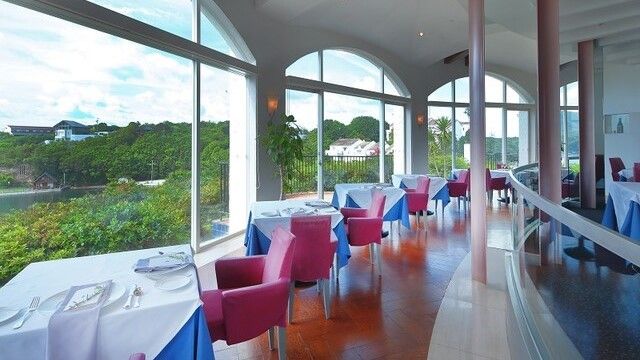 高台にある店内からは、英虞湾を一望することができます。また、店内の雰囲気はリゾートホテルらしい落ち着いた優雅さを誇ります。そんな美しい景色と上質な雰囲気の中で楽しめるのは、旬の食材をふんだんに使った彩り豊かなフランス料理の数々。いずれの料理にも、地元食材を積極的に使用しています。今この瞬間にここでしか味わうことができない料理とともに、至福のひとときをお過ごしください。