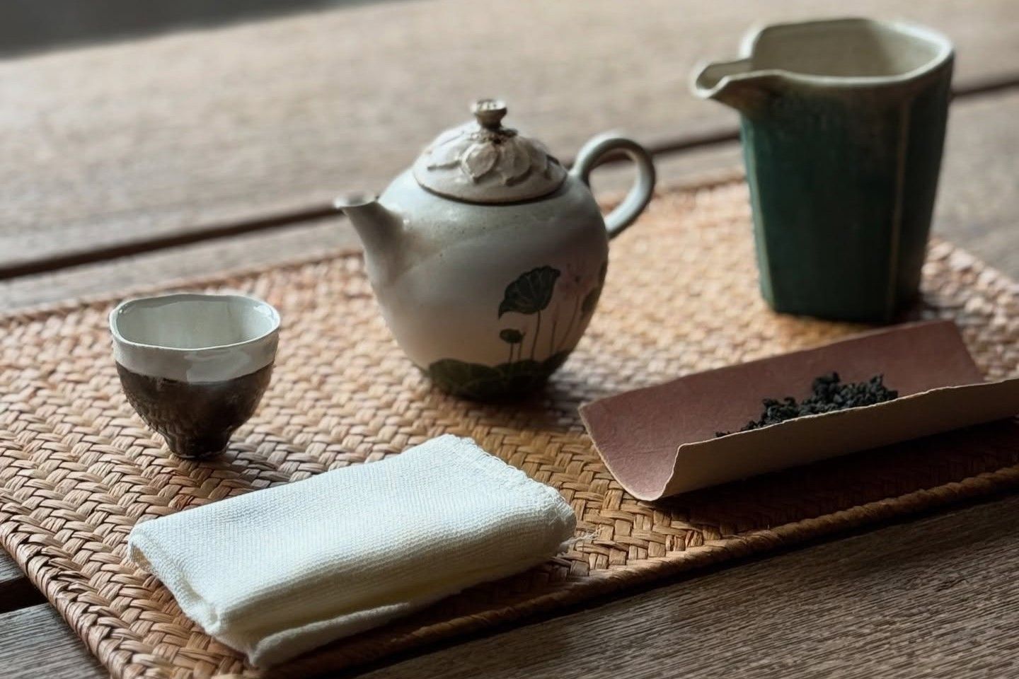 SPITAL in Hakozaki, Fukuoka. During the day, it serves Taiwanese tea and rare Japanese teas and sweets as "Chaba Harada." At night, it serves sake and music. A place where tea, sake, people, and music intersect.