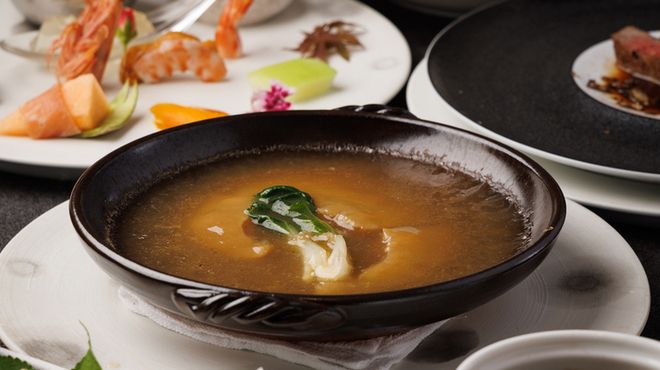 〈Miyabi Autumn Course〉A luxurious 9-course menu including domestically sourced Yoshikirizame whole-braised shark’s fin, simmered domestic abalone with truffle sauce, lightly poached Kuroge Wagyu, and more.